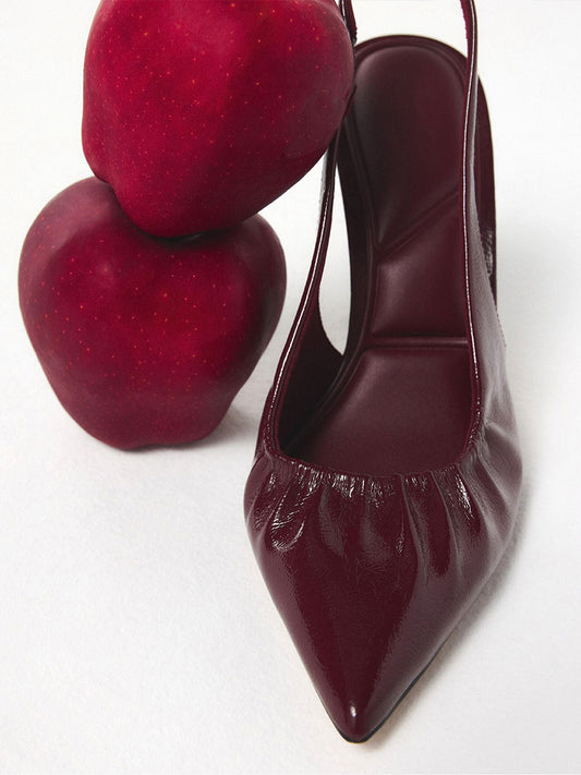 Patent Burgundy Pointed-Toe Ruched Vamp Slingback High Heels