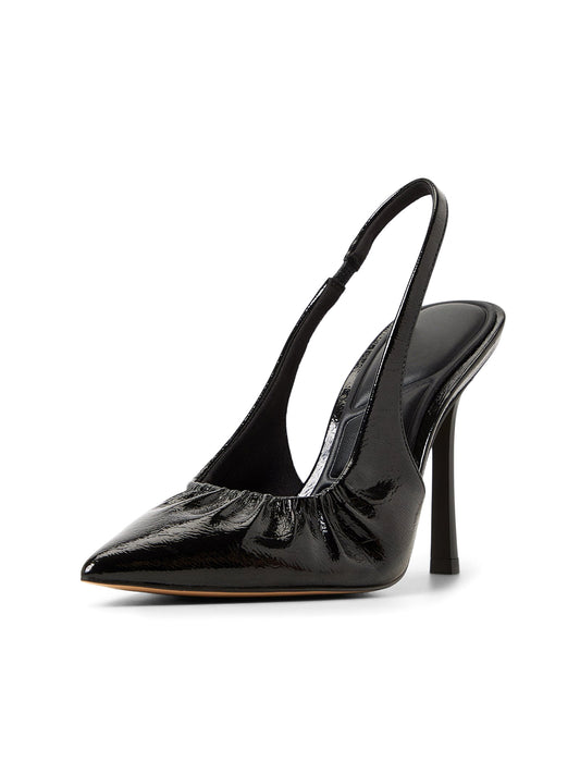 Patent Black Pointed-Toe Ruched Vamp Slingback High Heels