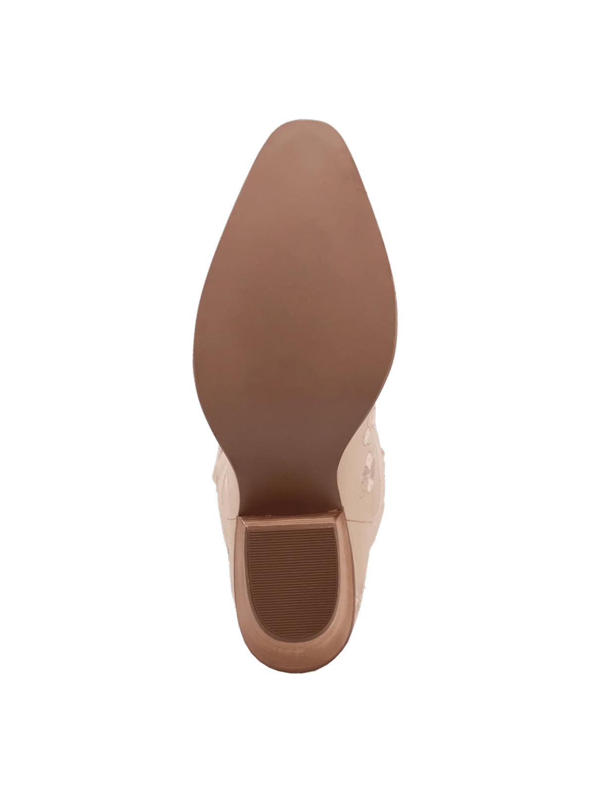 Flowers Embroidery Snip-Toe Mid Calf Cowgirl Boots - Sand