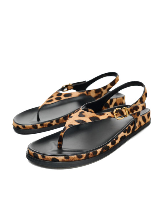 Leopard Faux Pony Hair Round-Toe Buckle Strap Sandals