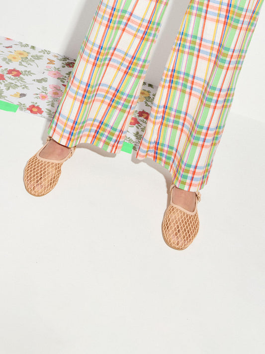 Natural Round-Toe Mesh Bridge Strap Mary Jane Flats