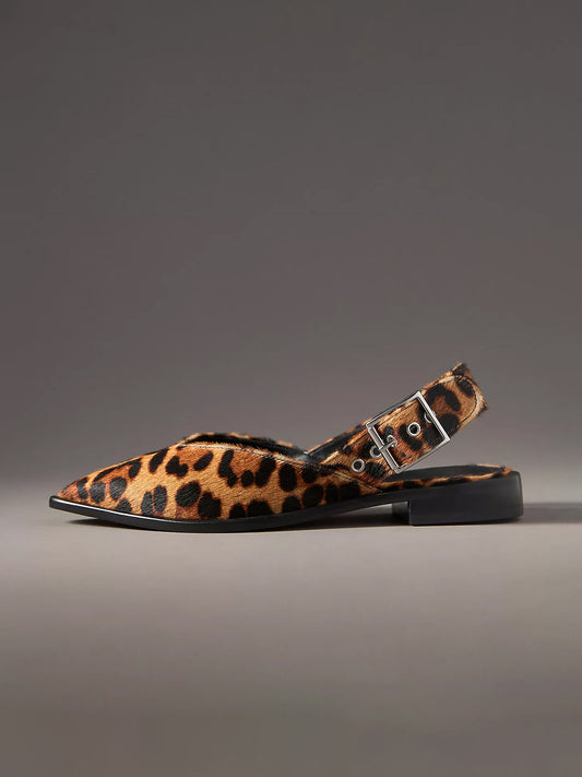 Leopard Pointed-Toe Buckle Slingback Flats