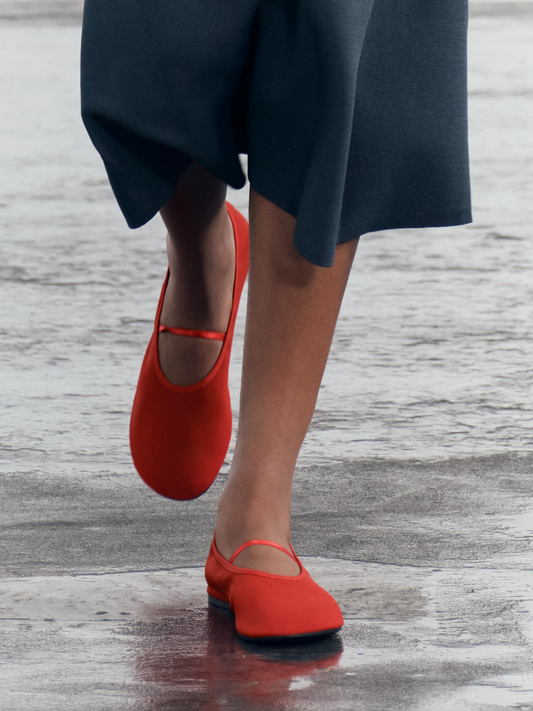 Cute Red Semi-Transparent Mesh Round-Toe Mary-Jane Ballet Flats