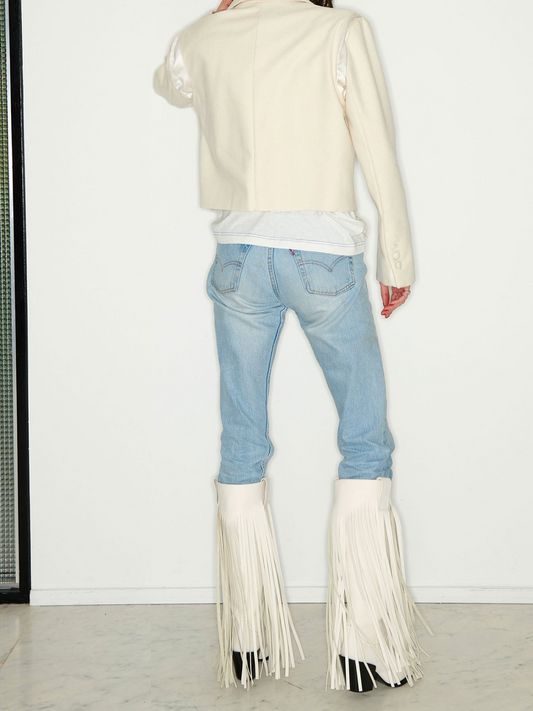 Ivory Snip-Toe Fringed Folded Panel Wide Mid Calf Boots