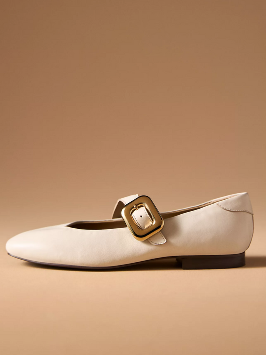 Ivory Square-Toe Ballet Wide Bridge Strap Flats