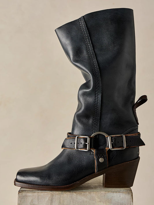 Washed Black Square-Toe Western Mid Calf Cowgirl Boots