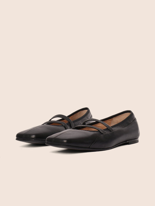 Black Square-Toe Double Mary Jane Classic Ballet Flats
