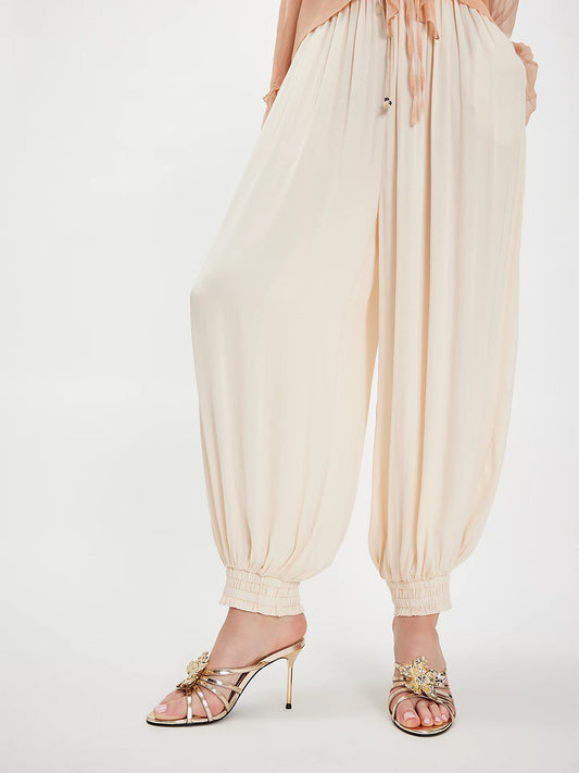 White Mesh Pointed-Toe Full Pearls And Slingback Kitten Heels