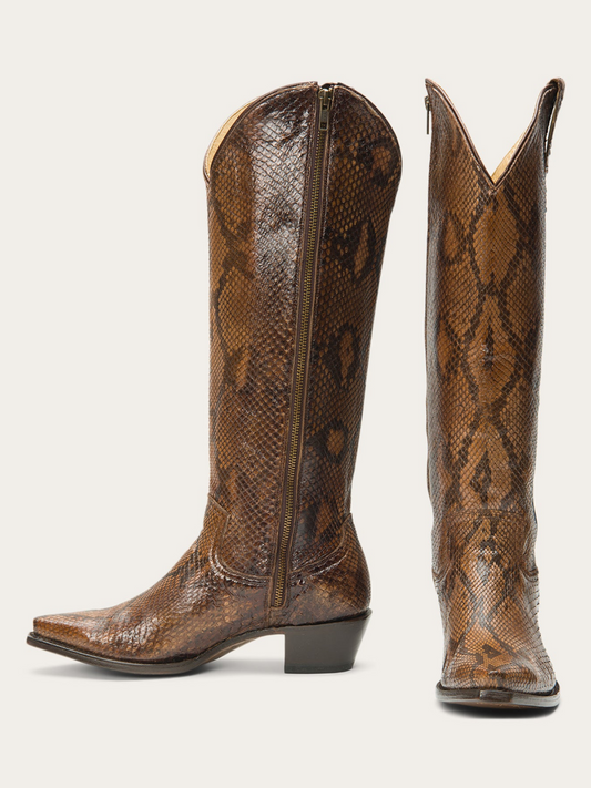 Brown Snakeskin Snip-Toe Classic Wide Calf Tall Knee High Cowgirl Boots
