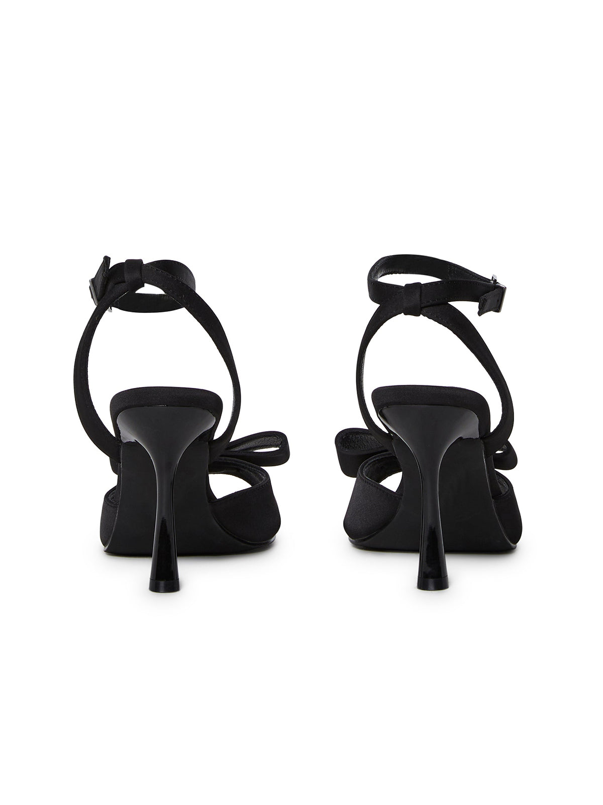 Black Satin Pointed-Toe Front Spiked Bow Ankle Strap High Heels