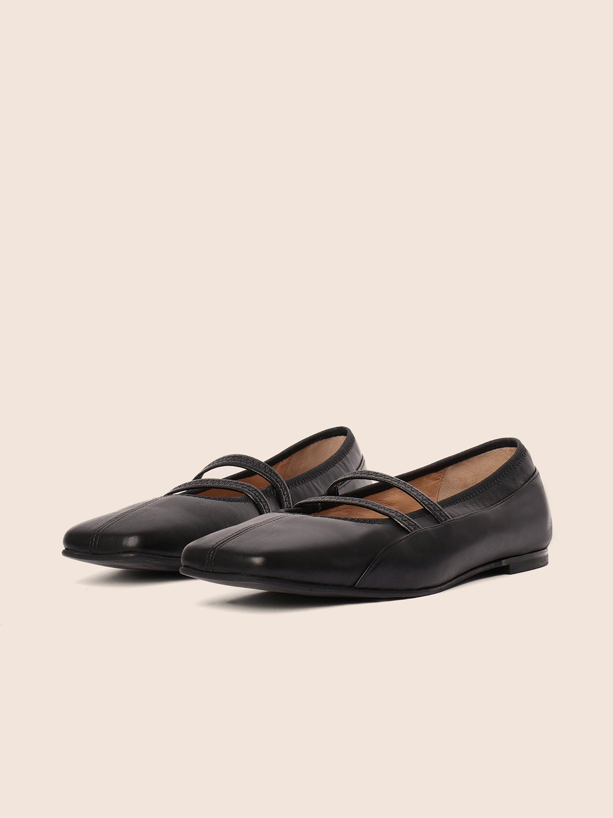 Black Square-Toe Double Mary Jane Classic Ballet Flats