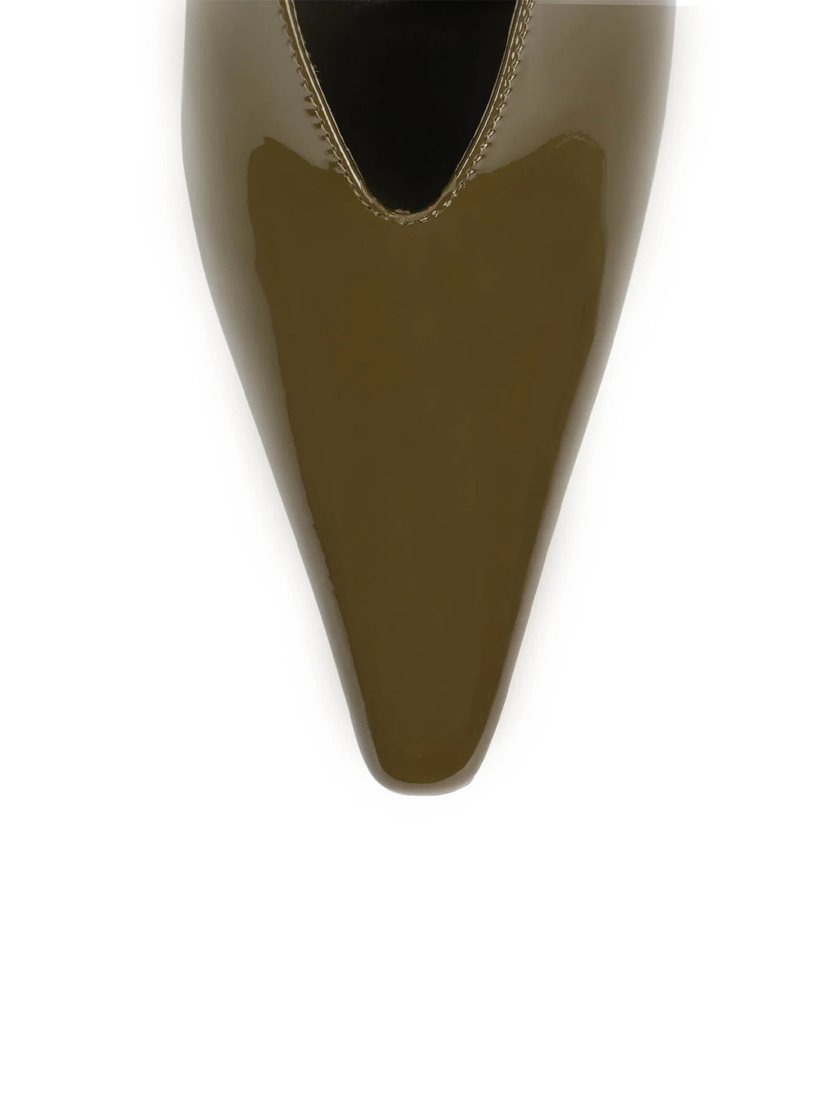 Green Patent Pointed-Toe Thick Slingback High Heels Pumps