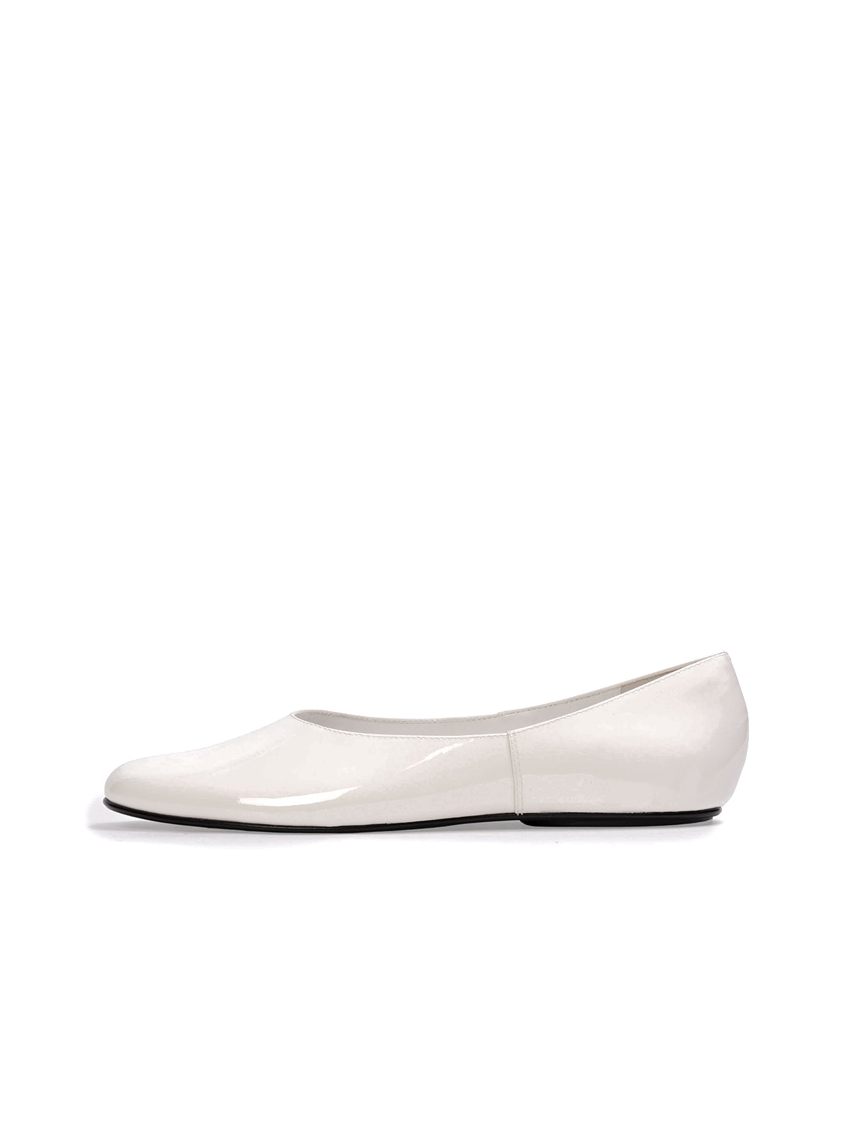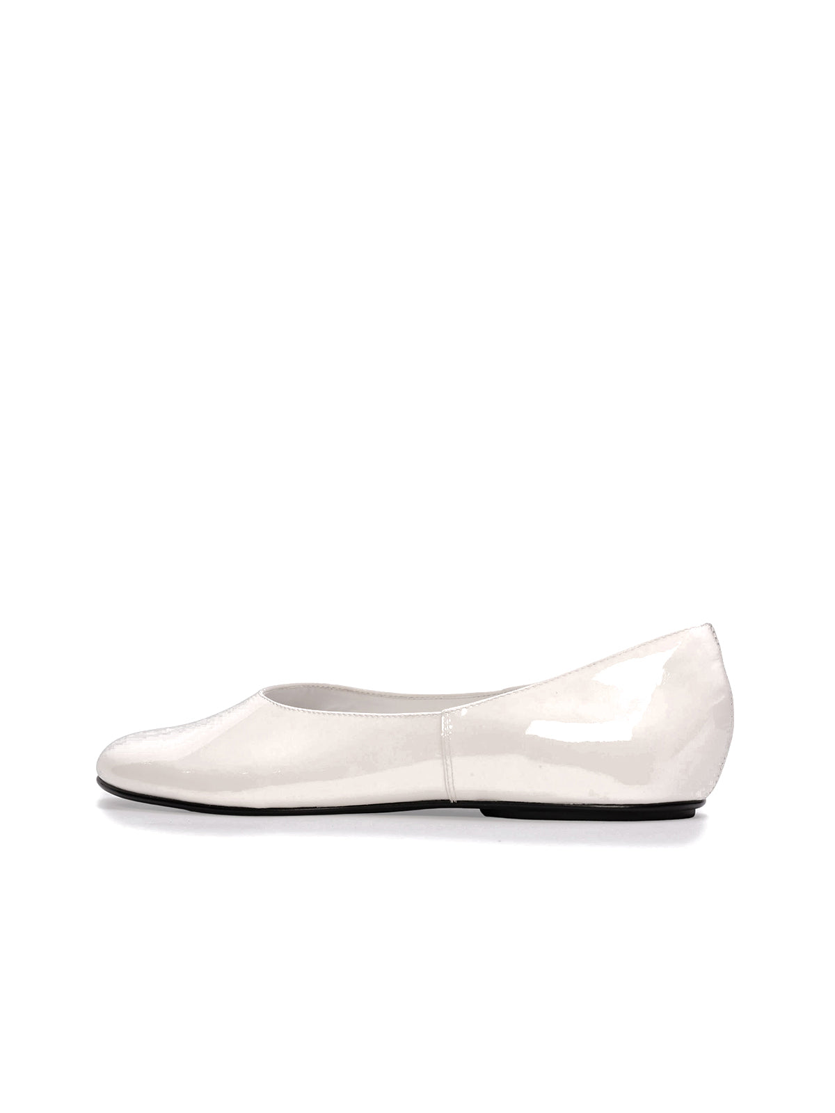 Patent Ivory Round-Toe Slip-On Ballet Flats