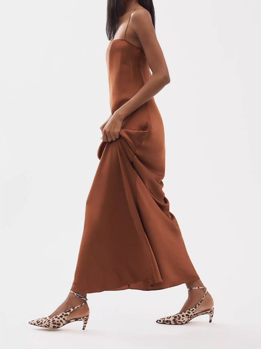 Leopard Faux Suede Pointed-Toe Chic Slingback And Buckle Ankle Strap Kitten Heels