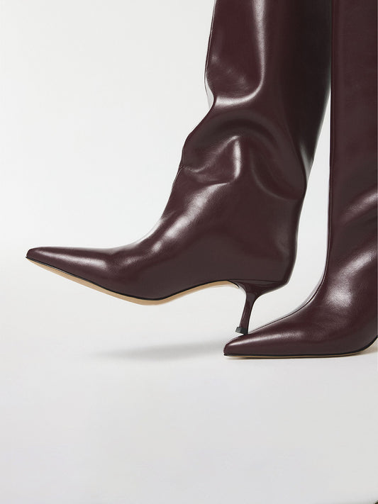Black Pointed-Toe Slouchy Wide Calf Over-The-Knee Stiletto Boots With Patent Stripe