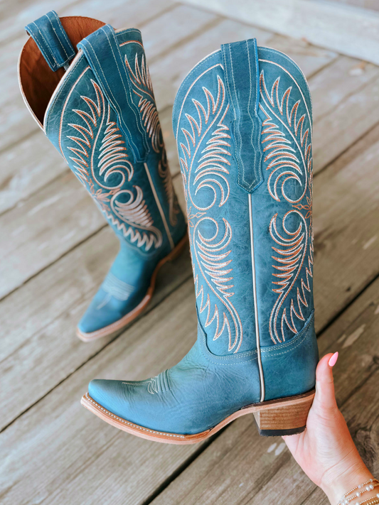 Turquoise Snip-Toe Applique Embroidery Wide Mid Calf Tall Cowgirl Boots
