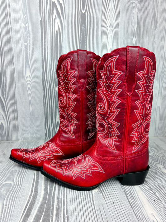 Ruby Red Snip-Toe Embroidery Wide Mid Calf Tall Cowgirl Boots