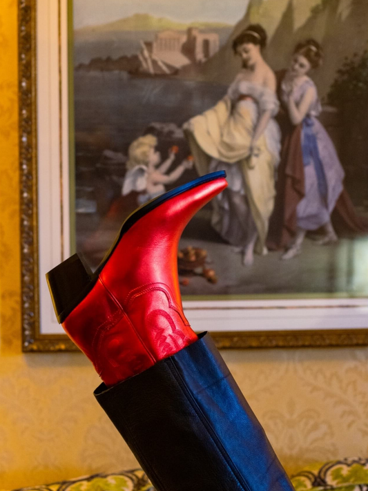 Metallic Red Snip-Toe Western Embroidery Mid Calf Cowgirl Boots
