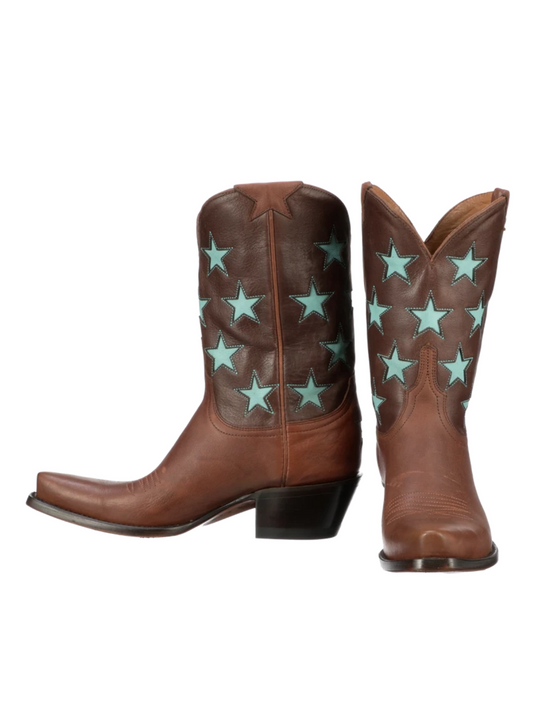 Star Inlays Snip-Toe Mid Calf Western Boots For Women - Contrast Brown And Light Brown