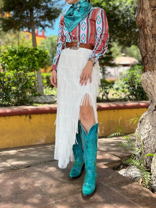 Turquoise Round-Toe Embroidery Wide Mid Calf Tall Cowgirl Boots