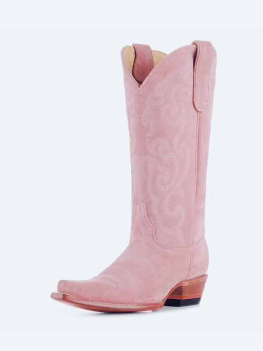Faux Suede Embroidery Snip-Toe Wide Mid Calf Tall Cowgirl Boots - Pink