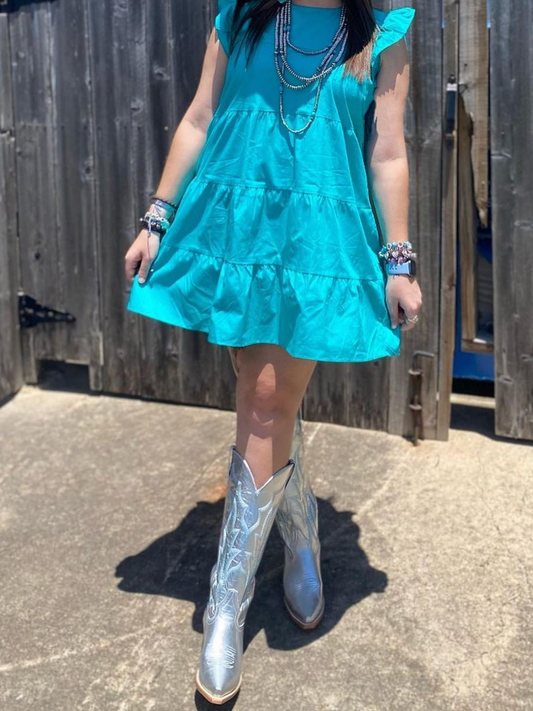 Aqua Snip-Toe Embroidery Wide Mid Calf Cowgirl Tall Boots