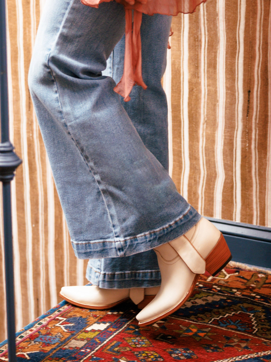 Bone Snip-Toe Elongated Mule Ear Pull Wide Mid Calf Boots