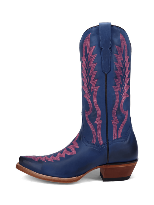 Blue Leaf Embroidery Snip-Toe Tall Wide Mid Calf Cowgirl Boots