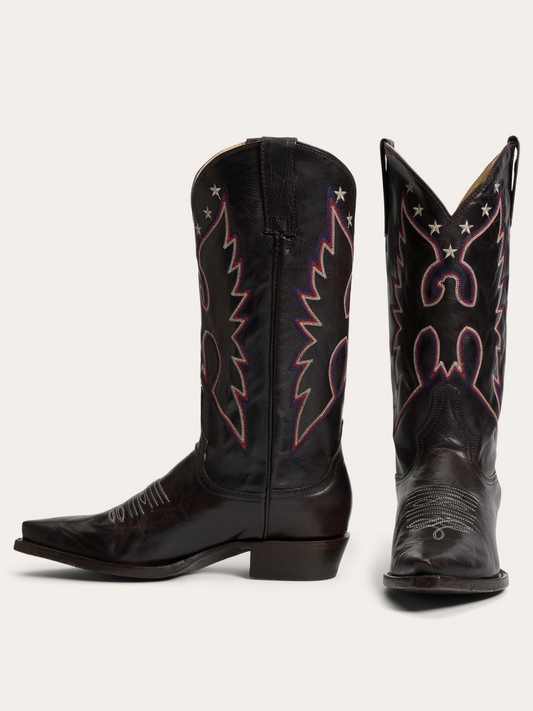 Black Snip-Toe Star Burst Embroidery Wide Calf Tall Knee High Cowgirl Boots