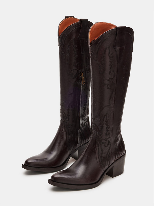 Dark Brown Pointed-Toe Classic Mid Calf Cowgirl Boots