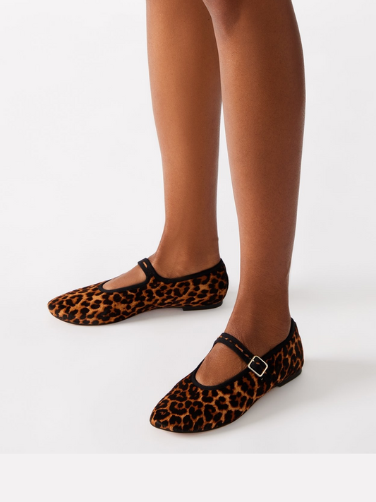 Leopard-Print Pony Hair Round-Toe Bridge Strap Mary Janes Ballet Flats