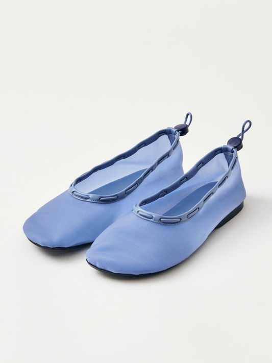 Drawstring Round-Toe Ballet Flats In Blue Mesh