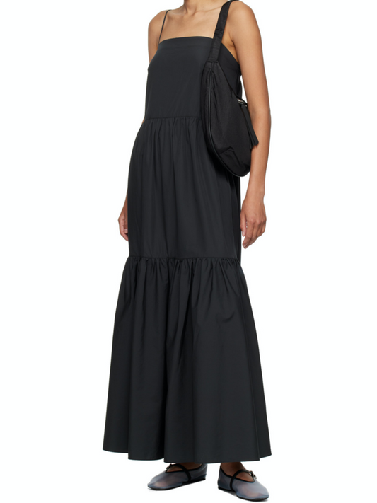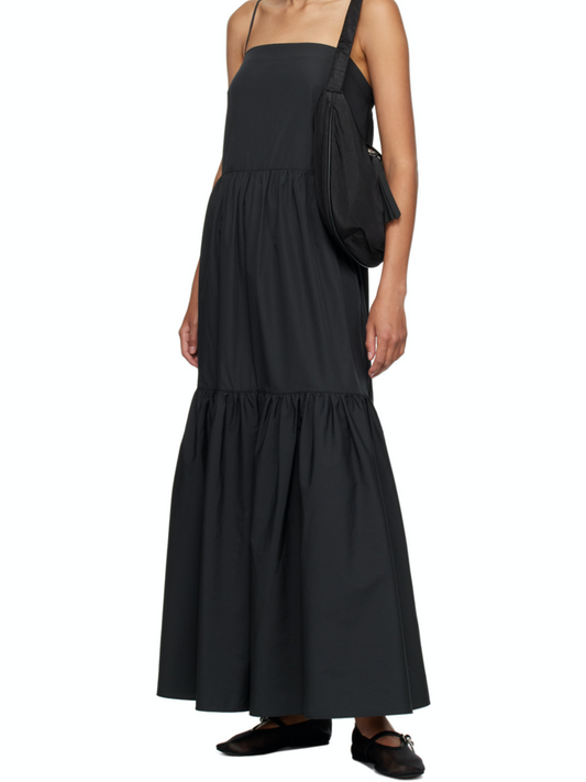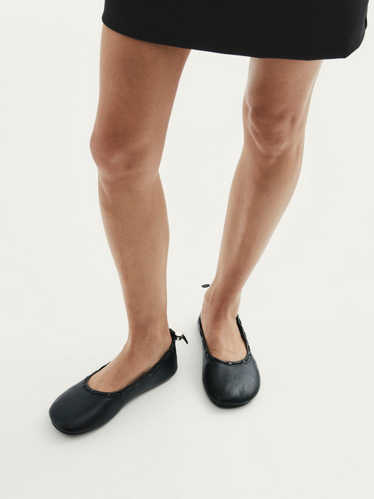 Drawstring Round-Toe Ballet Flats In Black Vegan Leather