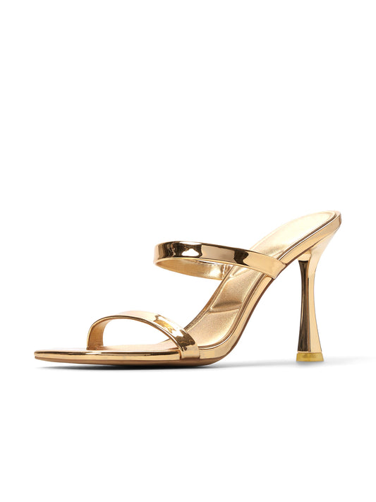 Metallic Gold Open Square-Toe Double Straps High Heels