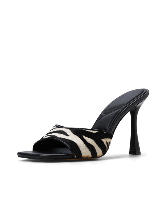 Leopard Satin Open Pointed-Toe Backless High Heels