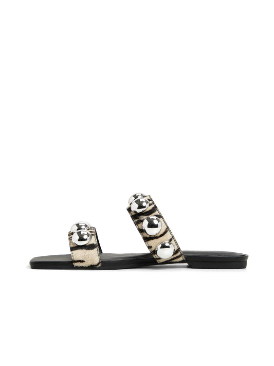 Cream Pointed-Toe Slingback Kitten Heels With Full Studs