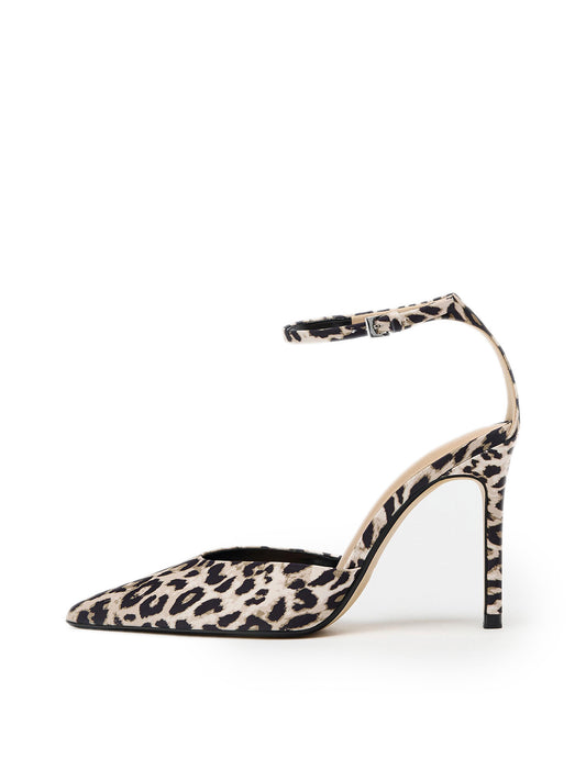 Leopard Satin Pointed-Toe Ankle Strap Pump High Heels