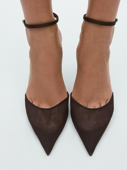 Brown Mesh Pointed-Toe Ankle Strap Pump High Heels