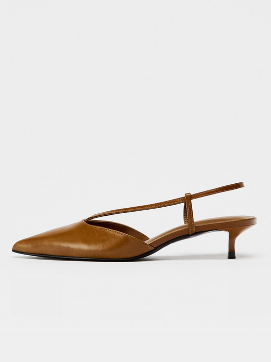 Brown Pointed-Toe Slingback Strap Kitten Heels