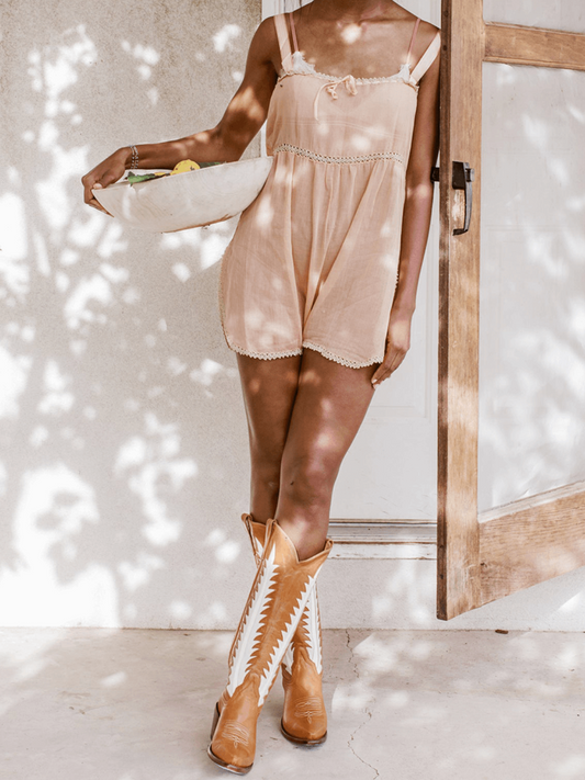 Beige Faux Suede Snip-Toe Half-Zip Fringe Rhinestone Knee High Tall Cowgirl Boots