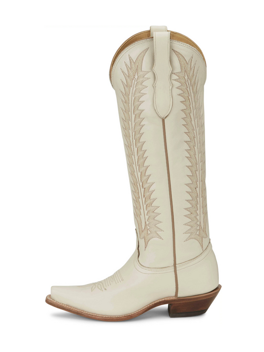 Bone Snip-Toe Wide Calf Embroidery Tall Knee High Cowgirl Boots