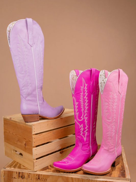 Lilac Purple Embroidery Snip-Toe Half-Zip Cowgirl Knee High Tall Boots