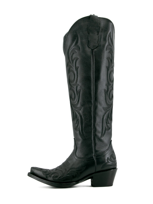 Black Embroidery Snip-Toe Half-Zip Knee High Cowgirl Tall Boots