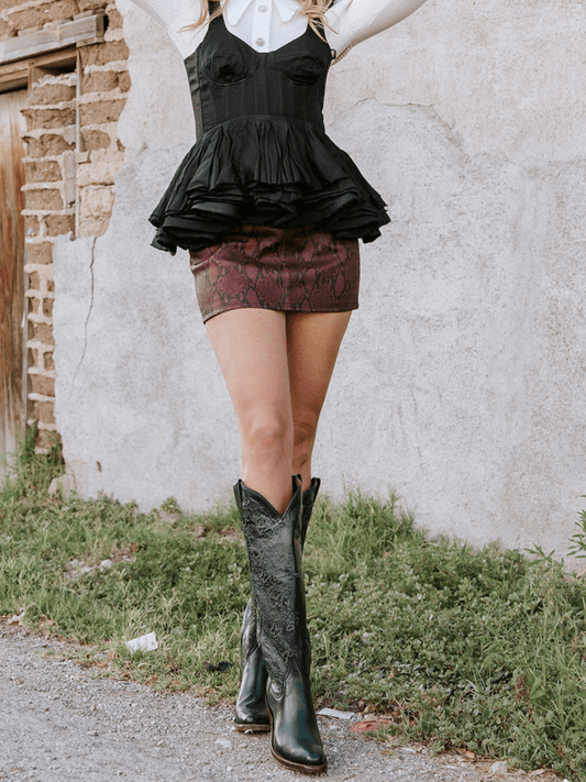 Black Snip-Toe Embroidery Half-Zip Western Knee High Tall Cowgirl Boots
