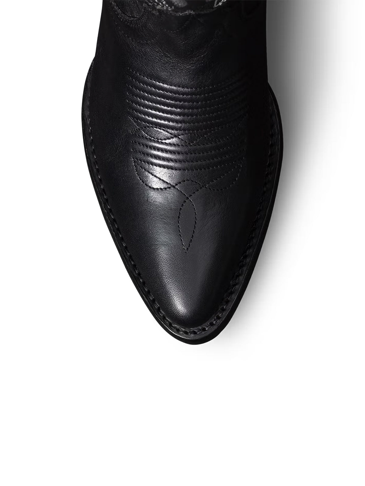 Western Embroidery Almond-Toe Tall Knee High Cowgirl Boots - Black