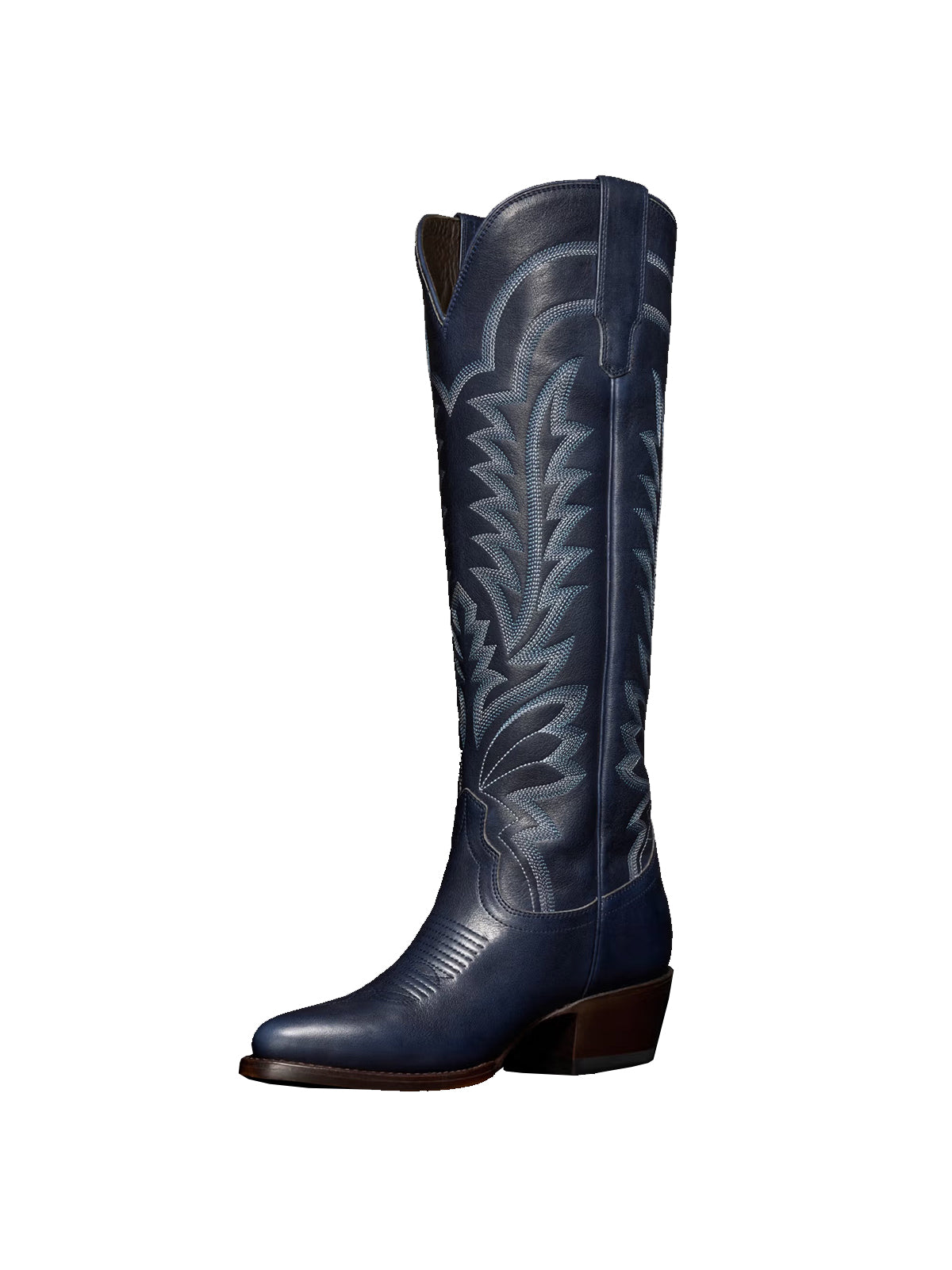 Western Embroidery Almond-Toe Tall Knee High Cowgirl Boots - Navy Blue