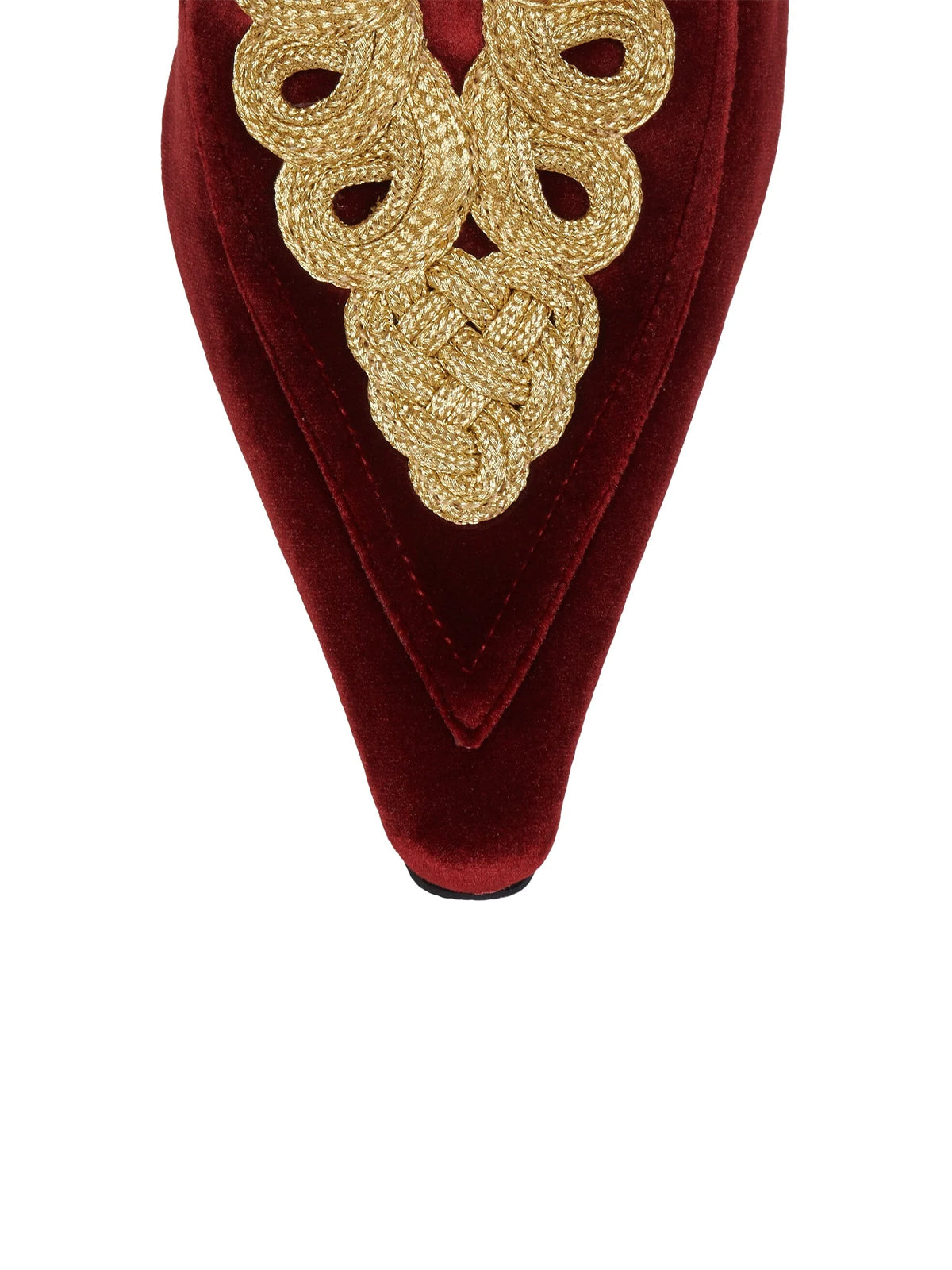 Wine Red Velvet Pointed-Toe Gold Embroidery Slingback High Heels Pumps