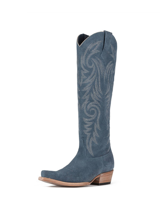 Blue Snip-Toe Classic Embroidery Western Half-Zip Knee High Cowgirl Boots