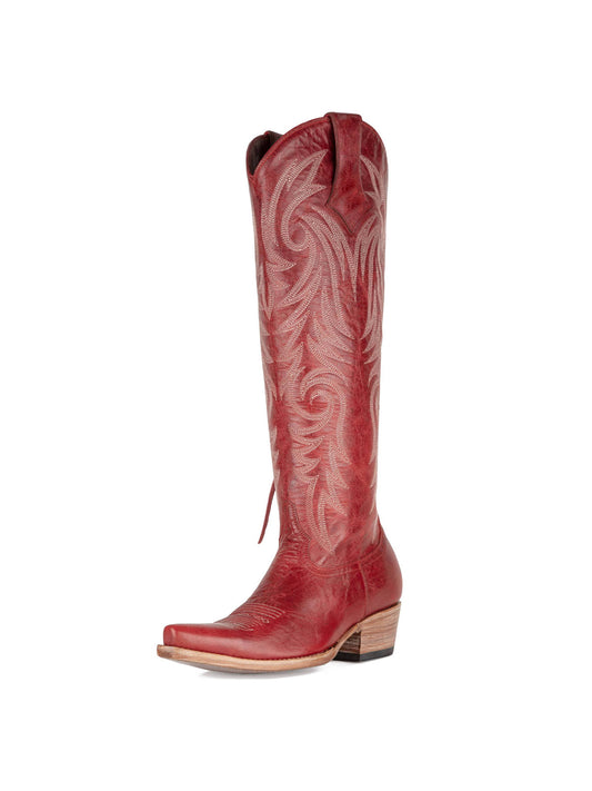 Red Snip-Toe Classic Embroidery Western Half-Zip Knee High Cowgirl Boots