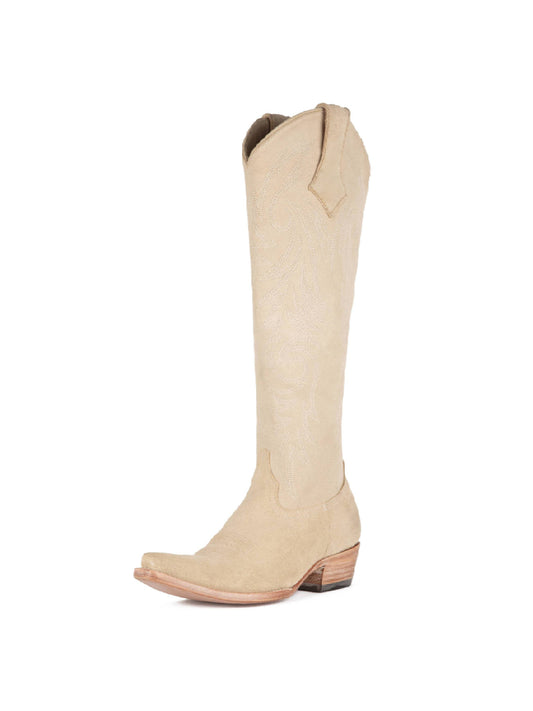 Sand Snip-Toe Classic Embroidery Western Half-Zip Knee High Cowgirl Boots